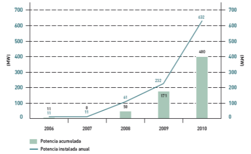 Figura 1. Evolución del sector solar termoeléctrico en España en los últimos años. Fuente: IDAE.