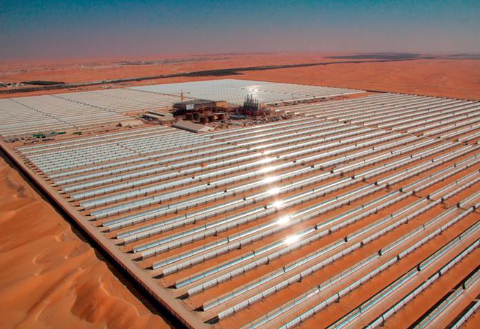 Después de tres años de construcción, el pasado 17 de marzo fue inaugurada en Madinat Zayed, a unos 120 kilómetros al sureste de Abu Dhabi (Emiratos Árabes Unidos), Shams 1, la mayor planta de aprovechamiento de energía solar en todo el mundo. El coste del proyecto ha ascendido a unos 440 millones de euros y ha contado con la participación de la empresa española Abengoa (20 %), la emiratí Masdar (60 %) y la francesa Total (20 %), que también serán las encargadas de la operación y actividades de mantenimiento de la planta.