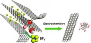 Esquema 1. Ilustración del proceso de exfoliación del graffito en mezclas de líquido iónico y agua.4