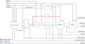 En la Unidad de Análisis de Sistemas de IMDEA Energía se han desarrollado multitud de análisis exergéticos de diferentes procesos de conversión energética. Uno de los últimos procesos estudiados consiste en un sistema de gasificación de biomasa lignocelulósica acoplada con síntesis Fischer – Tropsch y generación eléctrica mediante ciclo combinado, estudiándose además la influencia que diferentes configuraciones de proceso tienen en el desempeño termodinámico del sistema (Fig. 1). De este modo y previa simulación en Aspen Plus® de los procesos, se ha podido determinar que la gasificación, la combustión de char y la combustión de gas son los principales focos de ineficiencias del proceso, siendo los subprocesos de gasificación y de generación de vapor y electricidad (power) los que mayor tasa de exergía destruyen (Fig. 2).