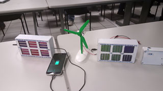 Los jóvenes estudiantes, ahora ingenieros profesionales, diseñaron un circuito electrónico adaptado especialmente para la potencia eléctrica entregada por el panel. La energía eléctrica se almacena en cuatro baterías recargables comerciales que están integradas al prototipo.