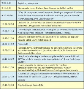 La Red Española de Análisis del Ciclo de Vida (esLCA) celebrará el 1er Workshop esLCA bajo la temática “Gestión del ciclo de vida en los sectores de la construcción y de la energía”. El evento tendrá lugar el próximo 23 de junio de 2016 en el Instituto de Ciencias de la Construcción Eduardo Torroja (Calle de Serrano Galvache, 4, 28033 Madrid). Esta primera edición del workshop, dirigido tanto a instituciones públicas como a empresas, contará con expertos ponentes que presentarán los últimos estudios y avances en materia de Análisis del Ciclo de Vida para los sectores tanto de la construcción como de la energía.