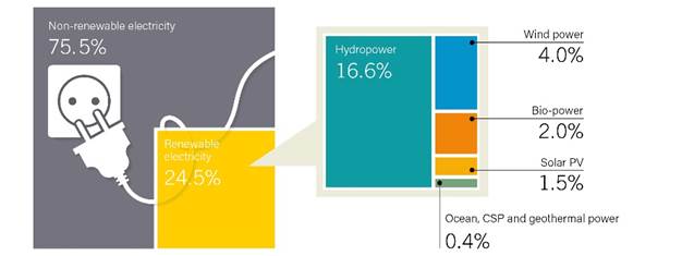 Figura 2: Participación de las energías renovables en la producción eléctrica global (2016).