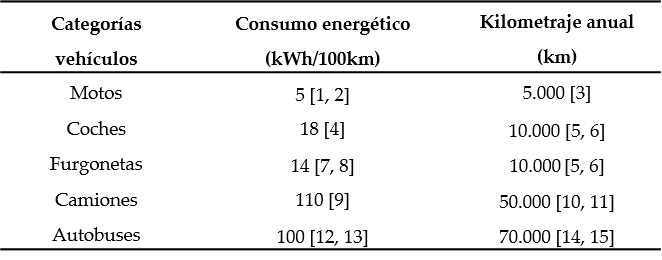 Desde hace algunos años, el sector del transporte está experimentando un gran cambio debido a la entrada de vehículos propulsados por combustibles alternativos menos contaminantes que los convencionales. Un ejemplo de ello es el fomento del vehículo eléctrico como posible sustituto de los vehículos de diésel y gasolina. En este sentido, es interesante analizar el consumo de los vehículos eléctricos y la forma en la que afecta al sistema eléctrico nacional. Para saber qué consumo eléctrico supone la utilización de este tipo de vehículos, es necesario tener en cuenta los consumos y kilometrajes específicos en función del servicio al que estén destinados (uso público o privado, transporte de pasajeros o de mercancías, etc.). Estos valores se exponen en la tabla adjunta: