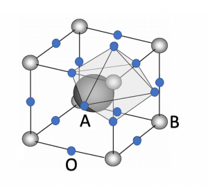 Figura 2. Estructura de una perovskita tipo cúbica ABO3.