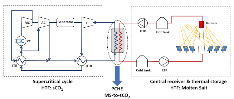 [3] J.I. Linares, M.J. Montes, A. Cantizano and C. Sánchez, 2020. A novel supercritical CO2 recompression Brayton power cycle for power tower concentrating solar plants. Applied Energy 263, 114644.