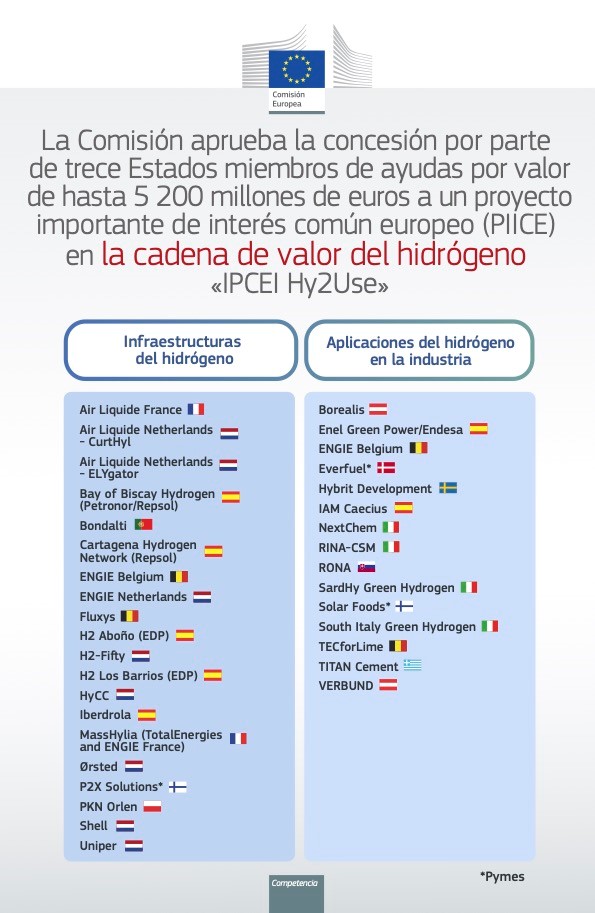 Una nueva ayuda de 5.200 millones de euros es aprobada por la Comisión Europea para impulsar el uso del hidrógeno: Hy2Use, otro gran paso hacia una transición energética limpia