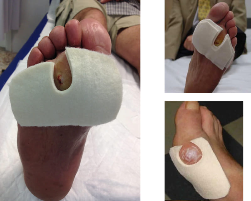 Varios ejemplos de cómo aplicar fieltros como descarga de la presión en el pie diabético