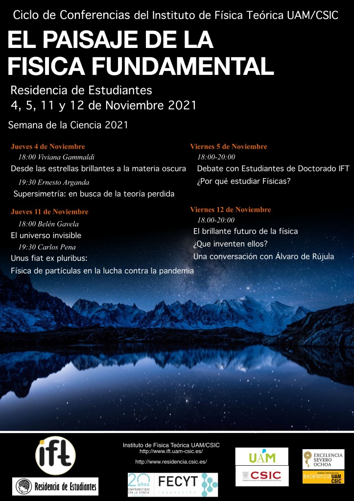 – Programa de conferencias de divulgación «El Paisaje de la Física Fundamental», Residencia de Estudiantes, 4, 5, 11 y 12 de Noviembre.