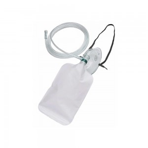 La MASCARILLA CON RESERVORIO incorpora a la mascarilla ”convencional” una bolsa conectada al cable del O2 que tiene un válvula unidireccional que sólo se abre durante la inspiración del paciente. Esto hace que en la bolsa el gas sea un 100% de O2. Cuando el paciente inhala la mezcla contiene entre un 60% y un 90% de O2. En la espiración el aire puede salir por una o dos válvulas de la mascarilla, limitando así la reinhalación de CO2.