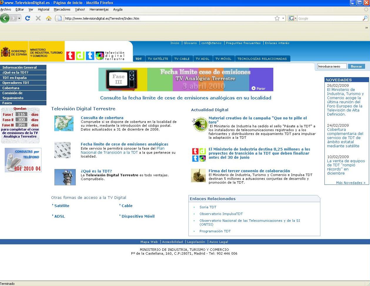 En lo que se refiere a la segunda web, lo primero que hay que señalar es que www.televisiondigital.es es la web sobre TDT del Ministerio de Industria, Turismo y Comercio.