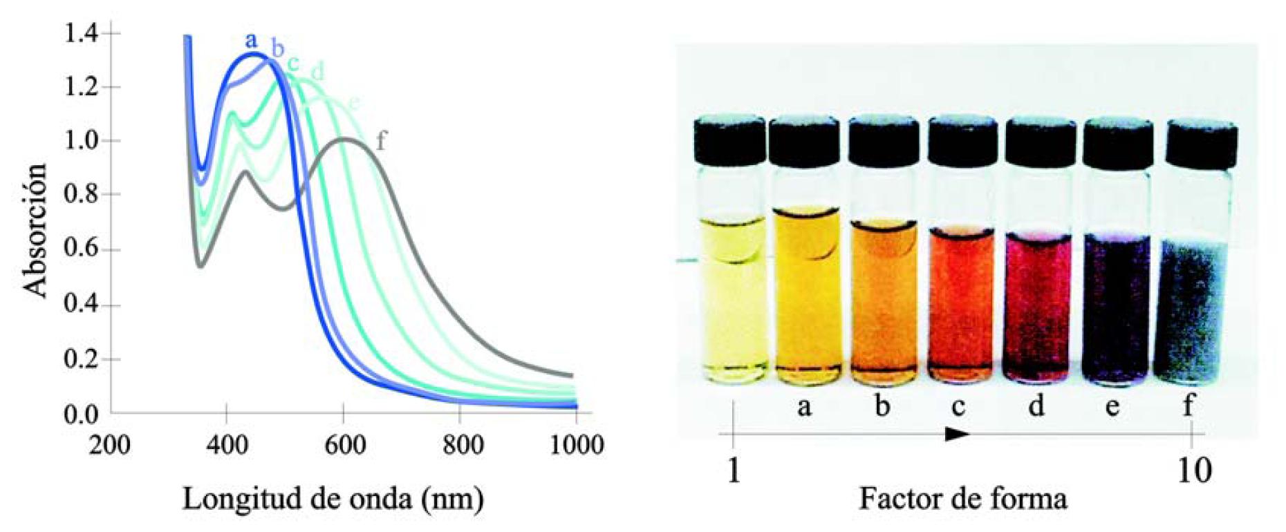 Es muy posible que algunos filtros de color comerciales contengan puntos cuánticos de compuestos II-VI. Los efectos cuánticos también pueden manifestarse a través de la forma. En este caso, el color dependerá del aspecto de las nanopartículas, como se muestra en la figura siguiente, en la que disoluciones acuosas de distintos nanocilindros de plata exhiben distintos colores.