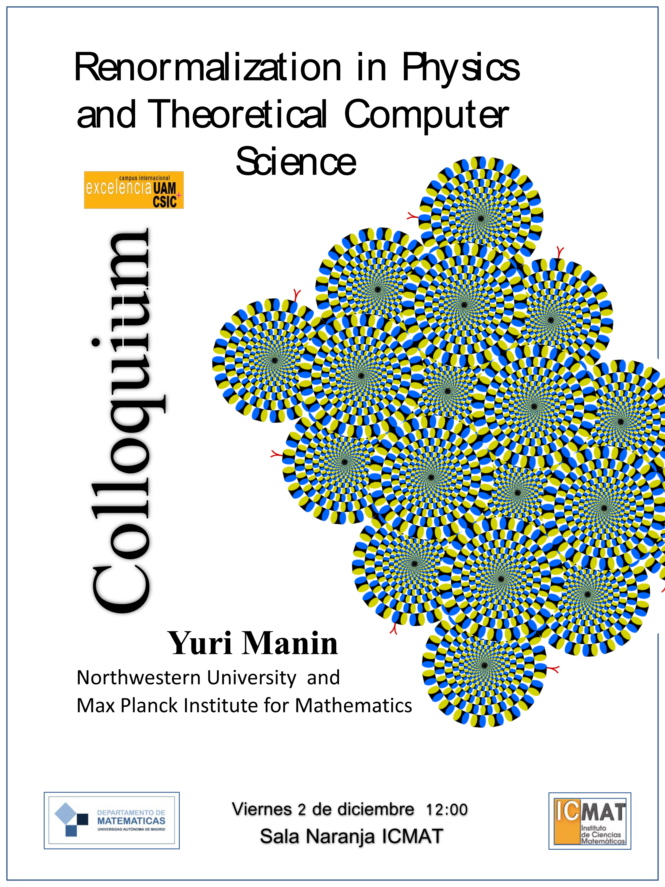 Este viernes, 2 de diciembre de 2011, el Profesor Yuri Ivanovitch Manin impartirá el Colloquio ICMAT-UAM, con una conferencia titulada “Renormalization in Physics and Theoretical Computer Science”.