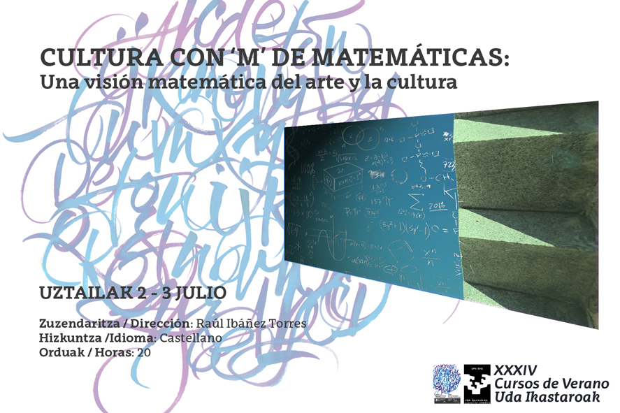 El 2 y 3 de julio tendrá lugar en Bizkaia Aretoa (Avda. Abandoibarra 3, Bilbao) “Cultura con “M” de Matemáticas”, un curso de verano de la Universidad de País Vasco (UPV/EHU) que mostrará una visión matemática del arte y la cultura. En estos dos días, matemáticos y artistas hablarán de la relación entre las matemáticas, el arte y sus diferentes formas de expresión. Ya puedes matricularte a través de este enlace.