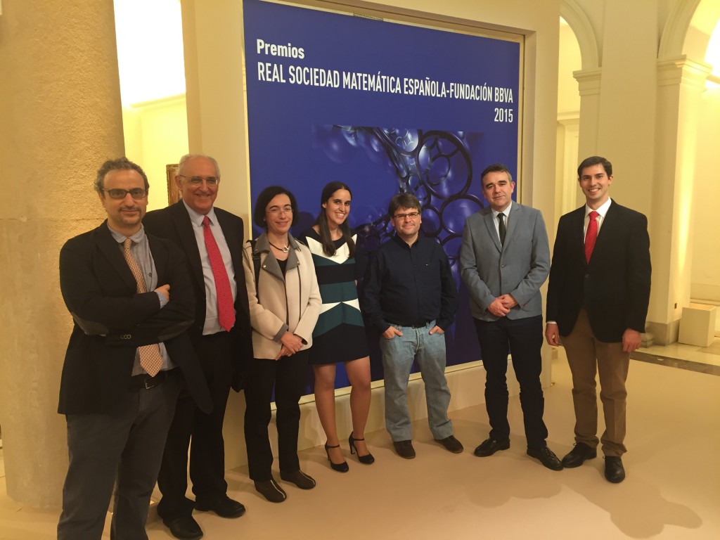 Ayer, 29 de octubre, se celebró la ceremonia de entrega de los premios Vicente Caselles a matemáticos menores de treinta años. Entre los seis seleccionados dos de ellos realizaron sus tesis doctorales en el ICMAT: Jezabel Curbelo (con Ana María Mancho) y Rafael Granero (con Rafael Orive). Es la primera edición de estos premios concedidos por la Fundación BBVA y la Real Sociedad Matemática Española, con el objetivo de apoyar la investigación matemática y aumentar la visibilidad social de esta ciencia que, según destacó Francisco González, presidente de la Fundación BBVA, “necesitamos de manera imperiosa para aprovechar el enorme potencial del presente”.  También se concedieron las Medallas de la RSME, que reconocen aportaciones en cualquiera de los ámbitos de actividad matemática. Entre las tres primeras premiadas está Marta Macho Stadler, Profesora Agregada de Geometría y Topología de la Universidad del País Vasco y colaboradora de la Unidad de Cultura Matemática del ICMAT, “por su labor de divulgación de las matemáticas, por su compromiso con la igualdad y por tender puentes entre los profesores de matemáticas de diferentes niveles educativos». ¡Enhorabuena a todos los premiados! Reproducimos a continuación la nota de prensa emitida por la Fundación BBVA.