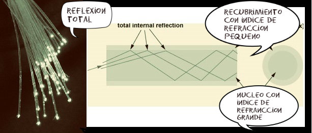 Las fibras ópticas son soportes para enviar información a través de internet. Son cables con recubrimientos de diferentes índices de refracción que ayudan al transporte sin pérdidas energéticas y con gran eficacia. Como explicamos anteriormente, los indices de refracción juegan un papel importante en la velocidad de propagación de la onda, dependiendo de su frecuencia. Así, surgen efectos que pueden dar lugar a la dispersión del paquete de ondas. Que posteriormente, de alguna manera se compense, y surjan solitones. La información enviada a través de fibra óptica también puede tener caracter de solitón.