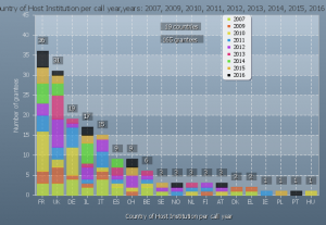 Destacan los 36 proyectos conseguidos por Francia, los 31 del Reino Unido y los 19 de Alemania. Israel, un pequeño país, consiguió 17 e Italia 15. España aparece con 9, lo que significa un 5,45% del total (165 proyectos).