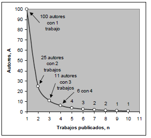 dónde A1 es el número de autores que publican un solo artículo en ese tema. Esto está relacionado con la Ley de Zipf.