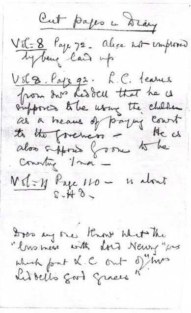 Como se trata de una intriga, no procede destriparla. Pero sí comentar algunas cosas interesantes de la trama, que, por cierto, se basa bastante en la realidad (quitando los crímenes, claro). Digamos que la Hermandad Lewis Carroll decide publicar los diarios privados del matemático británico. La joven becaria Kristen Hill viaja a Guildford para reunir los cuadernos originales y se encuentra con un hallazgo inesperado, la página que fue arrancada de uno de ellos. Esta página contiene supuestamente unas frases de Dodgson que podrían trastocar todo lo que se sabía sobre él.