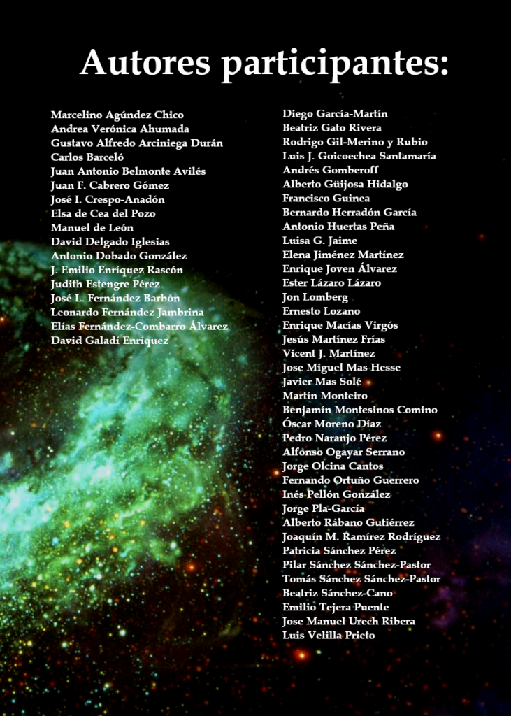 Y un agradecimiento especial a Carl Sagan por habernos hecho partícipes de la aventura de la Ciencia: “El cosmos es todo lo que es o todo lo que fue o todo lo que será”. Comienzo del capítulo 1 de COSMOS.
