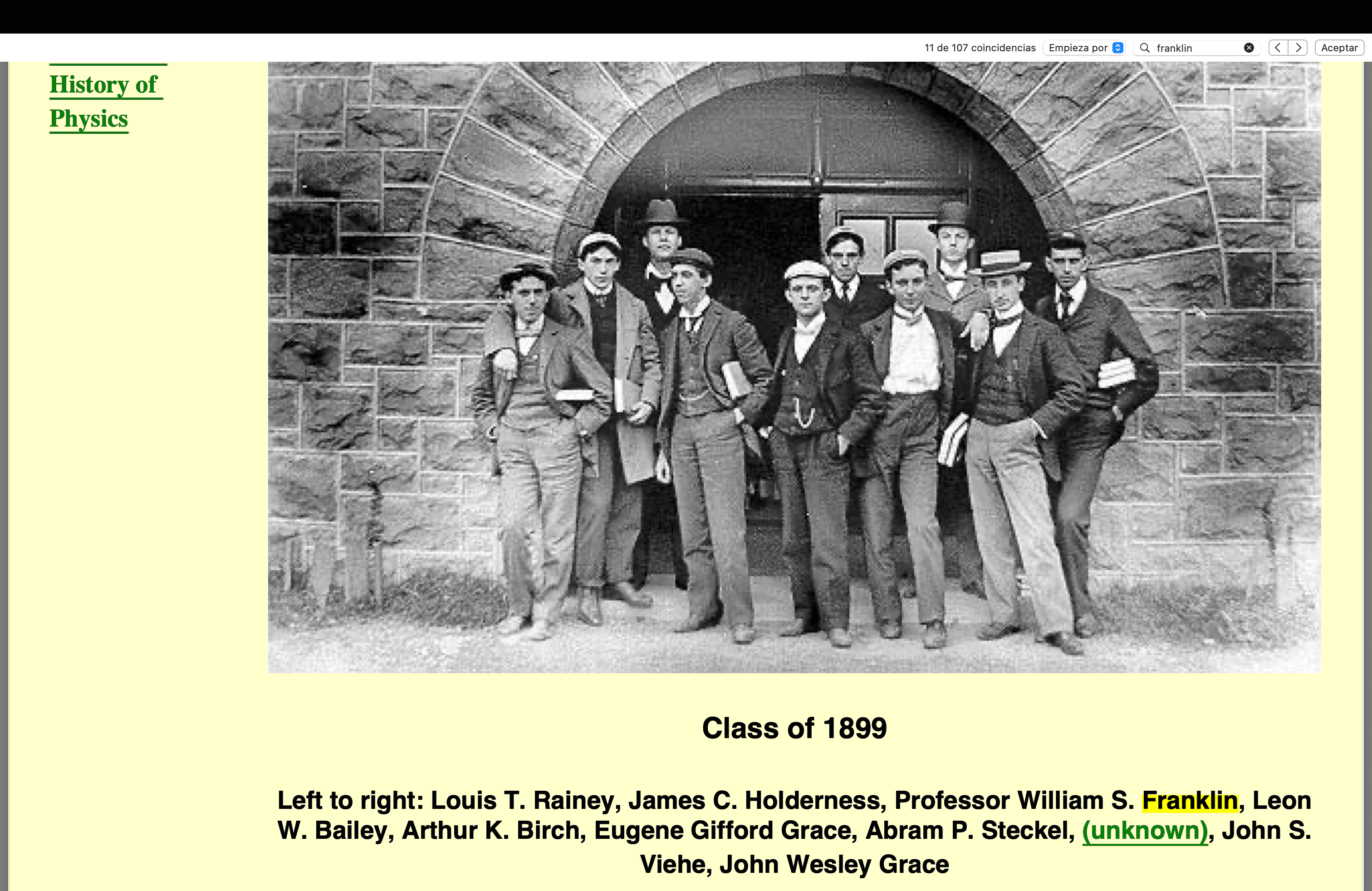 Releyendo el libro de Marcus de Sautoy, Lo que no podemos saber (Acantilado, 2016), descubrí, en el pasaje en el que habla del caos, la referencia a un físico, William Suddards Franklin (1863-1930). En su reseña publicada en 1898 al “Traite Elementaire de Mechanique fondee sur la Thermodynamique·”, de 1987, escrito por Pierre Duhem, se dice: