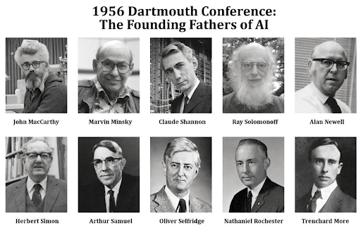 La Conferencia de Dartmouth sobre Inteligencia Artificial, celebrada en el verano de 1956 durante ocho semanas en esa universidad, se considera como el evento en el que se funda la inteligencia artificial. Fueron cuatro investigadores de gran prestigio los organizadores del evento: Claude Shannon (Petoskey, Michigan, 1916 – Medford, Massachusetts, 2001), Marvin Lee Minsky (Nueva York, 1927- Boston, 2016) , John McCarthy (Boston, 1927 – Stanford, 2011) y Nathaniel Rochester (Nueva York, 1919 – Newport, 2001).
