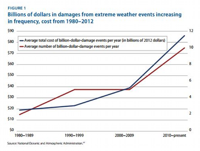 Estamos registrando una subida considerable de extremos meteorológicos en las últimas décadas. La gráfica de la NOAA nos dice que los extremos aumentan sin parar desde 1980.