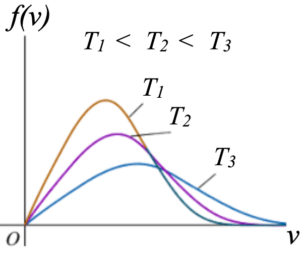 Esta distribución de velocidades de un gas de átomos o moléculas simples indica un número de moléculas igual a 0 para energías nulas, y un número de moléculas tendiendo a cero de forma exponencial cuando las energías son muy altas, dependiendo de la temperatura del gas la posición correspondiente al máximo número de moléculas con una cierta energía.
