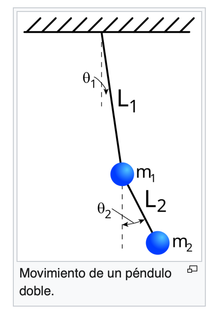 El péndulo simple es lo más regular que encontramos en la naturaleza, se ha utilizado desde que hay relojes para marcar el tiempo. Pero basta con colgar de un péndulo simple otro similar a él para que el movimiento se convierta en caótico. Pero esto no se enseña en las facultades de Físicas. Si colgamos otro péndulo del segundo, el movimiento pasa de caótico a aleatorio.