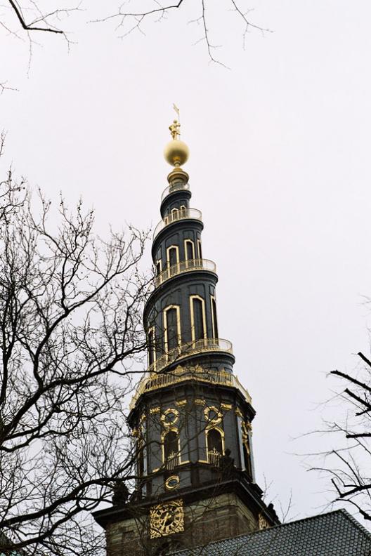 Una digresión. En mi charla en Boston, dejé caer que mi trabajo en Copenhague tenía que haber sido influido por el sitio. Al igual que ahora, esa ciudad tenía entonces un ambiente de cuento de hadas, como si hubiese sido diseñada pensando en Hans Christian Andersen. Así lo atestigua la foto que incluyo de la caprichosa torre de la iglesia que podía ver por la ventana del laboratorio. En realidad no tengo pruebas de ello, pero mi encanto por esa ciudad debe haber afectado mi forma de pensar de igual manera que lo hizo con mis sentimientos. Nos desplazábamos de las afueras al centro en bicicleta, nos encantaban las caracolas de hojaldre (los bollos auténticos de Dinamarca), los grandes canapés, la cerveza, y nos volvimos a los Estados Unidos con una mudanza de muebles modernos adorables y un respeto por la conciencia social de los escandinavos.