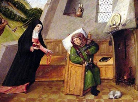 El sillonbol. Ya la moral religiosa estigmatizó los efectos perniciosos de la falta de actividad física. La pereza según la retrata El Bosco en La mesa de los Pecados Capitales. Museo del Prado.