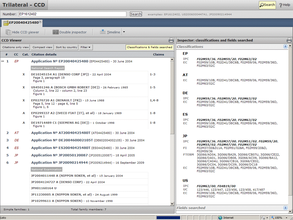 Esta herramienta ofrece un único punto de acceso a los datos de documentos citados de las tres oficinas, permitiendo tanto a los Examinadores de Patentes como a los innovadores e inventores conocer el Estado de la Técnica citado por las Oficinas para los miembros de una familia de patentes.