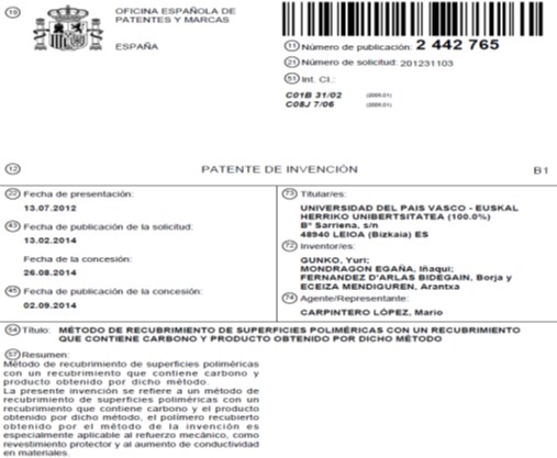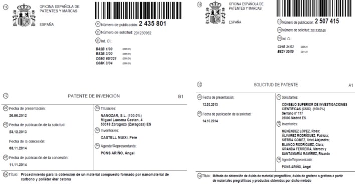 Actualmente, hay concedidas en España unas cien patentes relacionadas con el grafeno de las cuales alrededor de 50 son enteramente españolas.