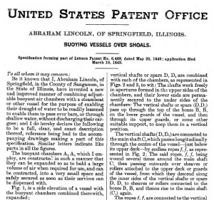 Fue el decimosexto presidente de los EE.UU desde 1861 hasta su asesinato en 1865. Sin duda se trata de uno de los más populares de la historia estadounidense y sí, también fue inventor. Durante su adolescencia y juventud navegó con frecuencia a lo largo del río Missisipi y en alguna ocasión llegó hasta Nueva Orleans desde Illinois donde residía. Con frecuencia se encontraba con el problema de que el barco encallaba debido a la existencia de bancos de arena. De hecho cuando comenzó su carrera política uno de sus principales objetivos era mejorar la navegabilidad del río Sangamon, afluente del río Illinois que a su vez desemboca en el Missisipi. Lincoln trató de diseñar un sistema que permitiera a los barcos que surcaban esos ríos superar los bancos de arena, sin necesidad de emplear la tremenda fuerza bruta que normalmente y como había contemplado, era necesario aplicar. Ideó un barco con un sistema de flotadores que se podían inflar cuando fuera necesario para poder superar sin tanto esfuerzo los bancos de arena. La solicitud de título “Buoying Vessels over Shoals” y número US6469 la presentó en 1847 aprovechando su estancia en Washington como representante en el congreso. La patente se concedió el 22 de mayo de 1849. En aquella época era preciso presentar un modelo de la invención junto con la solicitud, modelo que se ha conservado y se encuentra en uno de los museos de la “smithsonian institution”. Nunca se llegó a fabricar y los expertos opinan que probablemente no funcionaría. Abraham Lincoln siempre se sintió atraído por las invenciones y las patentes, trabajó como abogado en algún litigio relacionado con las mismas y dio una famosa conferencia sobre el tema especialmente recordada por su final: “The patent system added the fuel of interest to the fire of genius”.