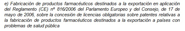 Este motivo adicional está relacionado con la Declaración de Doha de la que se hablará posteriormente. Al mismo se le dedica el artículo 96. Otro segundo motivo adicional para la concesión de licencias obligatorias es la necesidad de poner término a prácticas que una decisión administrativa firme de alcance nacional o comunitario, o una sentencia, hayan declarado contrarias a la legislación de defensa de la competencia (artículo 94).