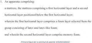 Este nuevo colchón, además de tratarse de una invención sobre la que se ha presentado una solicitud de patente que incluye una serie de capas de látex y espuma, en realidad inicia un nuevo concepto comercial; se establecen precios claros, reducción de costes al máximo, compra por internet y envío en una caja de cartón a través del correo. La “start-up”, de nombre CASPER ha recibido en el último año una gran atención en los medios norteamericanos, donde se resalta su impresionante éxito económico. El colchón es objeto de la solicitud de patente WO2015164222.