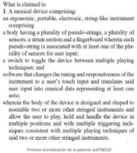 El Artiphon es un instrumento musical que permite no solo imitar a docenas de instrumentos, sino también la forma de tocarlos. Se puede tocar como si fuera una guitarra o un piano, de manera intuitiva, sin necesidad de conocimientos musicales. Es el objeto de la patente norteamericana concedida US8796529.