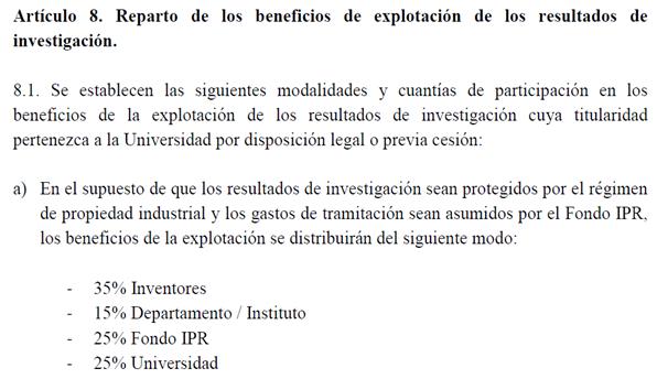 Es decir, que además de que, a los científicos que trabajan en Universidades españolas, se les pague una miseria, sólo van a recibir un 35% de lo que generen sus inventos…. This is Spain.