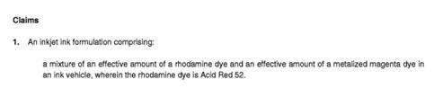 Formulación de tinta estable a la luz basada en mezclas de rodamina y de tintes que contienen metales.