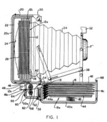 Figura de la patente US2203687 sobre la cámara instantánea de Polaroid