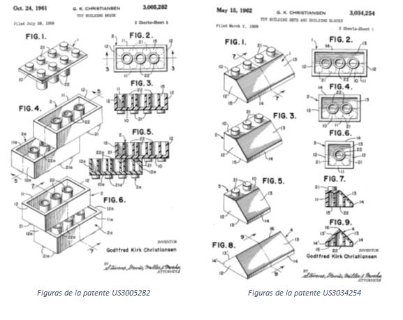 A partir de estos antecedentes, LEGO® inventó sus característicos bloques de construcción, los cuales fueron protegidos en los Estados Unidos mediante la patente de número US3005282. Una variante de esos bloques se protegió posteriormente mediante la patente US3034254.