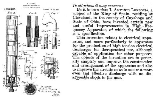 Antonio Longoria nació en Madrid en 1890 y con 21 años emigró a los Estados Unidos, donde se estableció, obteniendo la nacionalidad estadounidense. Tras estudiar medicina e ingeniería, se convirtió en el presidente de la empresa “Sterling Electrical”. En la base de datos Espacenet es posible encontrar 23 documentos de patente a su nombre, la mayoría sobre soldadura, que era su campo de especialización. Parece ser que, en sus investigaciones sobre aparatos terapéuticos consistentes en el suministro de descargas eléctricas y sobre nuevos métodos y dispositivos de soldadura llegó a una máquina capaz, según afirmaba, de generar lo que denominaba un “rayo de la muerte” que mataba a perros, gatos y conejos de manera instantánea, transformando su sangre en agua. La década de los años 30 del siglo XX fue testigo de otros supuestos inventos consistentes en rayos que causaban la muerte a distancia. Nicola Tesla decía haber inventado lo que llamaba la telefuerza. Otro rayo de la muerte famoso fue el de Harry Grindell Mathews.