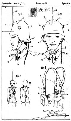 La patente española de número ES0152626 con fecha de presentación 29/04/1941 tiene por objeto un casco militar provisto en su interior de un dispositivo emisor y un receptor, con una antena telescópica en su parte frontal. El inventor fue Juan Manuel Álvarez de Lorenzana, Vizconde de Barrantes, que combatió en el bando nacional durante la guerra civil como Capitán del Cuerpo de Ingenieros en el Tercio Requeté de Campaña. Su experiencia en el campo de combate le había hecho ver que los enlaces radiofónicos entre compañías o batallones se empleaban con frecuencia después de parapetos y como se utilizaban ondas de 4 metros, también llamadas ópticas, las comunicaciones no eran posibles si no había visibilidad de antena entre los corresponsales, con el consiguiente riesgo para dichos corresponsales. El invento permitía que el soldado pudiera asomar la antena al exterior, permaneciendo protegido, cosa que no era posible si el aparato de radio se montaba a la espalda como se venía haciendo hasta entonces.