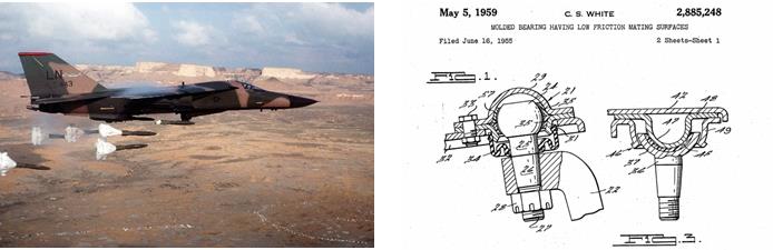 El F111 y figuras de la patente US2885248, supuestamente infringida, sobre un cojinete de baja fricción