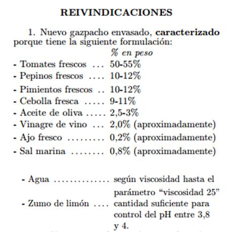 Reivindicación de la patente ES2092965B1 sobre gazpacho envasado de la marca ALVALLE®