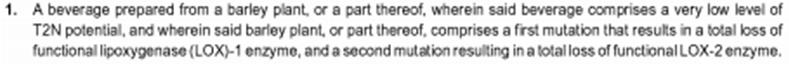 Reivindicación de la patente EP2384110 sobre cerveza obtenida de cebada con mutaciones inducidas artificialmente