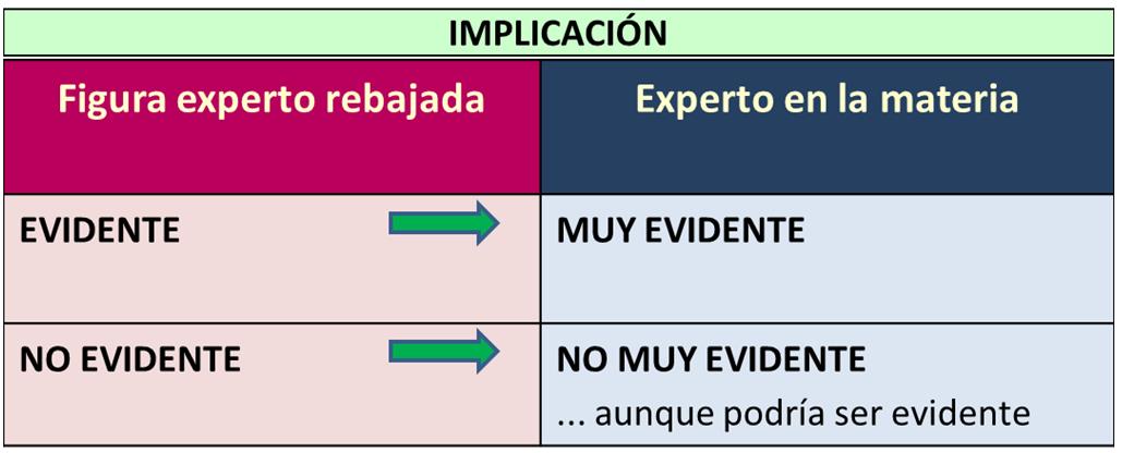 Nos encontramos entonces con una implicación de conceptos: la evidencia en la figura rebajada implica la muy evidencia del Experto en la Materia (aunque no al contrario).