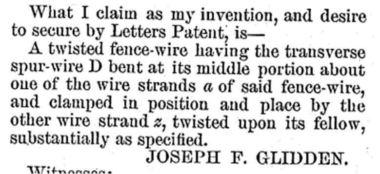 Fue para resolver este problema que apareció el invento protagonista de esta entrada. Aunque ya en 1865, el inglés Richard Newton había llevado un primer tipo de alambre de espinos a Argentina y varias invenciones se protegieron en Francia, se considera que la patente que protegió el diseño de alambre que finalmente se impuso en todo el mundo fue la US157124, obtenida por Joseph Glidden de Illinois en 1874.