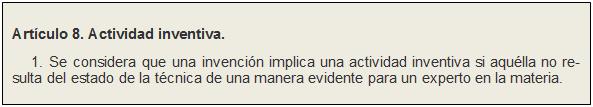 Conviene recordar en este punto la definición del requisito de actividad inventiva en la Ley de Patentes 24/2015: