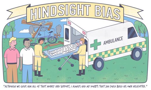Aileen Oeberst (profesora de la Universidad de Mainz, Alemania y especializada en el “sesgo” de wikipedia) ha realizado investigación sobre la psicología del “sesgo retrospectivo” y ha concluido que ésta tiene dos componentes: por un lado, una vez se conoce un acontecimiento, parece más inevitable que antes (“tenía que ocurrir”). Por otro lado, parece más previsible que antes (“ya lo sabía”).